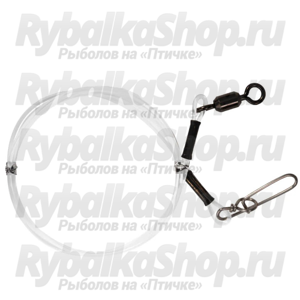 Фурнитура: Оснащен крепкими вертлюгами (swivels) и застежками Pike Snap из закаленной нержавеющей стали для максимальной надежности. Металлические части имеют антибликовое покрытие Black Nickel (черный никель) для дополнительной маскировки. Соединения выполнены с помощью точных обжимных втулок, что сохраняет исходную прочность поводкового материала.