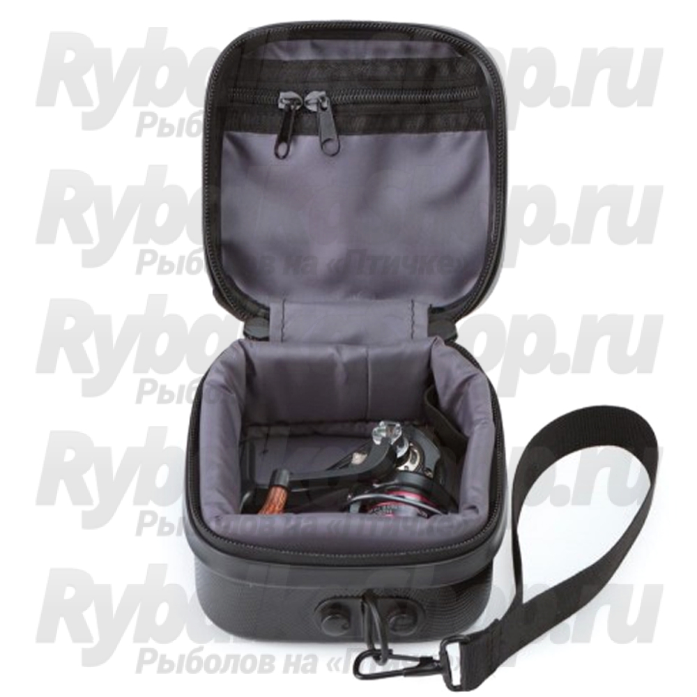 Внутри кейса съёмный вкладыш с резинкой для сменной шпули, карман на молнии.