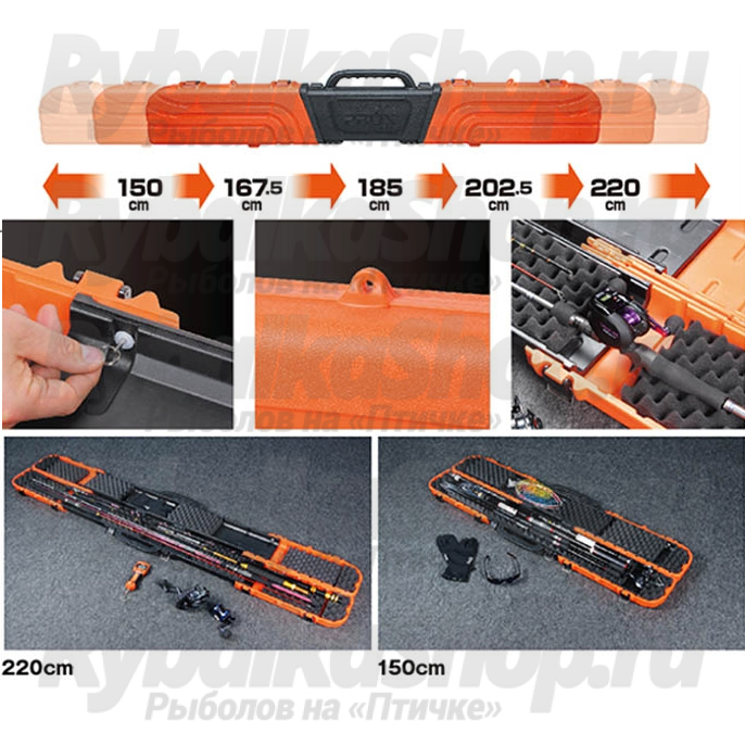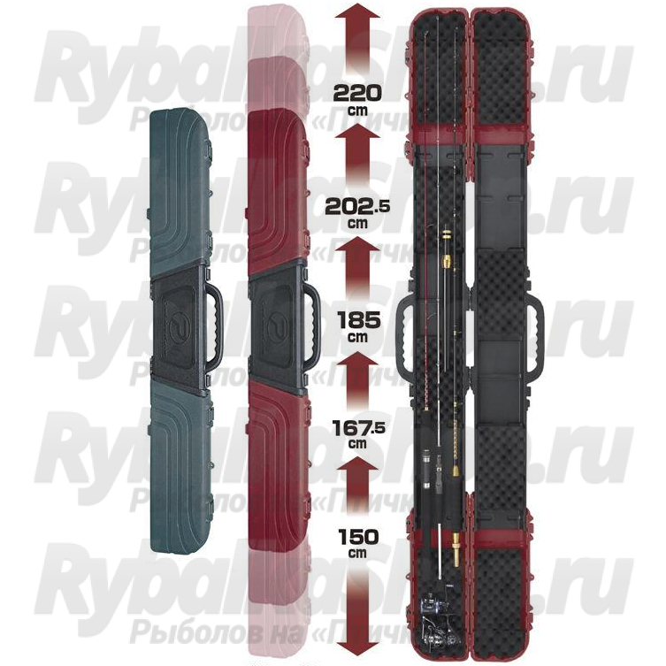 Prox Container Gear 5 Length Hard Rod Case - сверхпрочный кейс для удилищ с изменяемой длиной. Размер регулируется с шагом 17,5 см от 150 до 220 см. Кейс позволяет разместить до 8 удилищ. Для безопасности содержимого снабжен полиуретановыми вставками, которые призваны защитить ваши снасти в самых разных рыболовных поездок.