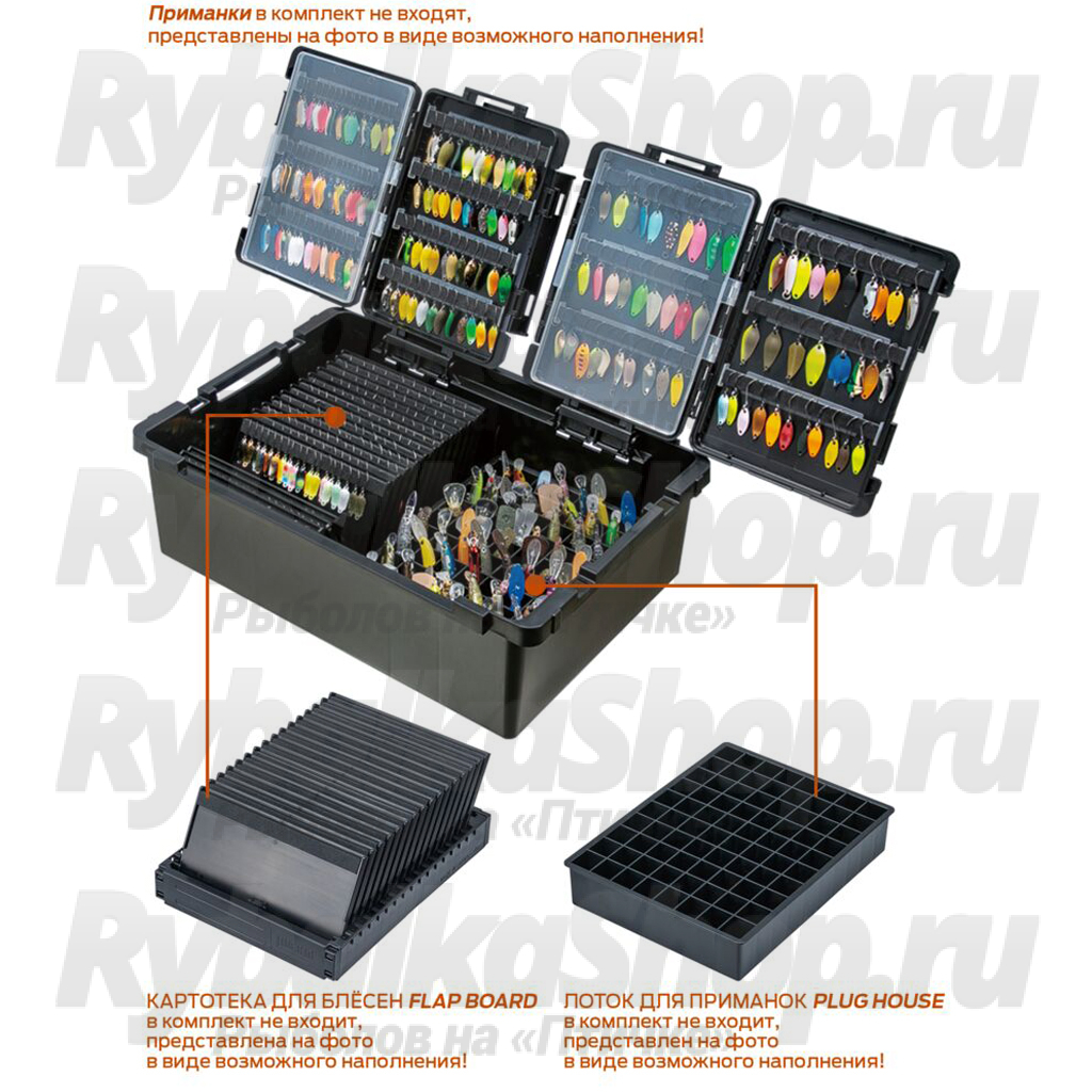 Рекомендуется к использованию с картотекой для блесен Meiho FLAP-BOARD и лотком для приманок Meiho PLUG-HOUSE, что позволяет компактно разместить большое количество приманок, как блесен, так и воблеров. Изготовлена из высококачественнго ударопрочного пластика и материала EVA.