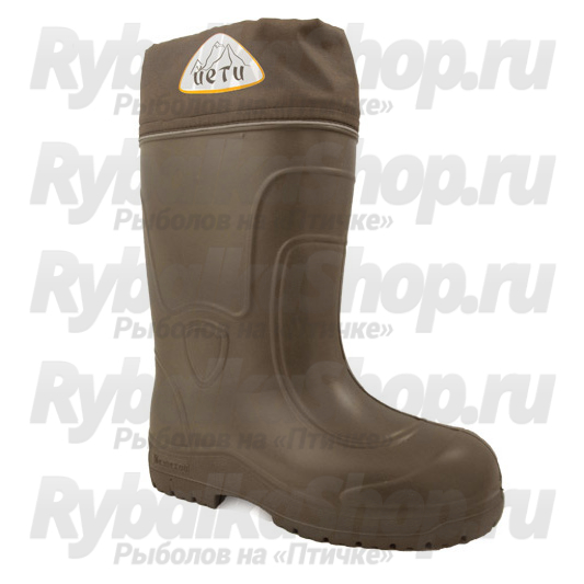 Мужские сапоги фирмы «Вездеход» серии «Йети» СВ-75 из ЭВА (EVA) с утеплителемМодель «Йети» изготовлена из этиленвинилацетата (ЭВА). Это легкий и упругий материал, имеющий хорошие амортизирующие свойства, даже при очень низких температурах, устойчивый к растворителям и маслам. Пористая структура ЭВА создает «воздушную прослойку» и позволяет сохранять тепло. Главное преимущество сапог «Йети» перед зимними бахилами и ботинками для суровых условий это их вес, а также возможность чувствовать себя комфортно при температуре до -60 *С, что позволяет использовать эти сапоги при длительной ходьбе, так и для продолжительного, малоподвижного пребывания на холоде. Высота сапога с манжетой 42 см, затяжная манжета из водоотталкивающей ткани препятствует попаданию снега и воды во внутрь сапога. Комплектуется комбинированным утеплителем из 7 слоёв.